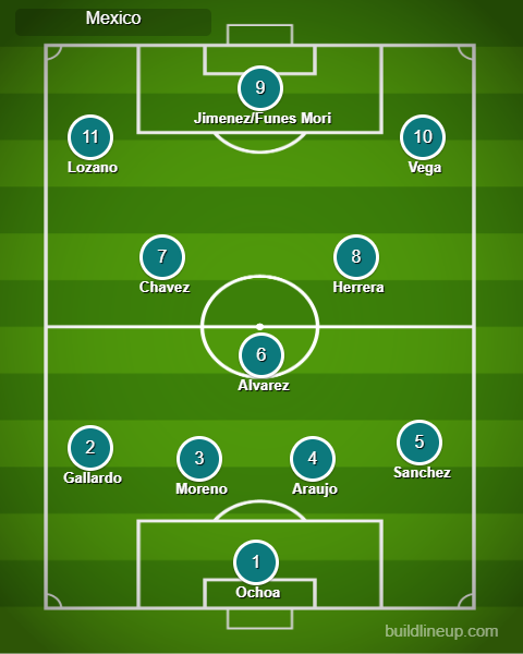 The only three players that have earned a starting spot are Guillermo Ochoa, Edson Alvarez and Hirving Lozano. In recent games Alexis Vega has surfaced as the best option on the right wing, while Luis Chavez may get the nod to start in the midfield.