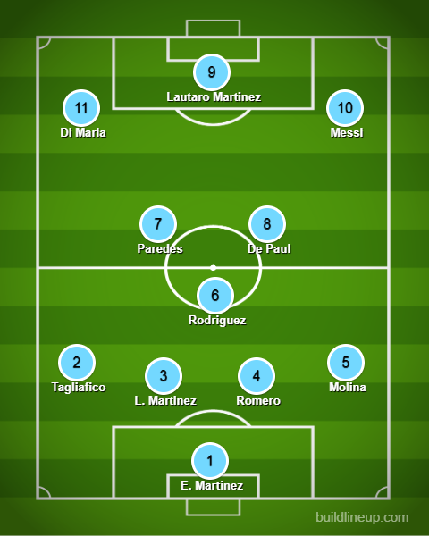The midfield has a lot of quality, Rodrigo De Paul and Leandro Paredes should be easy locks, they can contribute defensively and also provide the front three. Angel Di Maria can play on either wing, expect Messi to have the freedom to find space in between lines and the presence of the goal scorer Lautaro Martinez will keep defenders busy and give Messi an opportunity to find holes in the defense. This is a very scary team that can score a lot of goals.